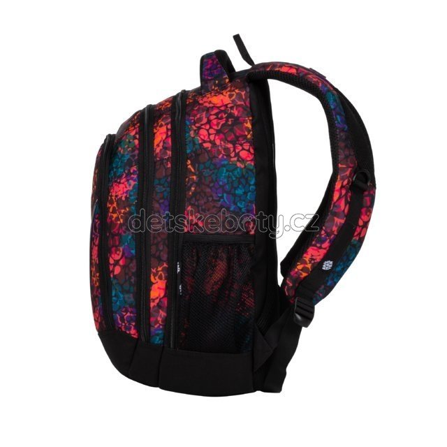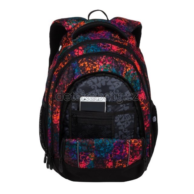 Tříkomorový dívčí, prostorný studentský batoh vhodný od 4. třídy ZŠ. Anatomicky tvarovaná záda s příjemným polstrováním a polstrovanými ramenními popruhy. Dvě boční kapsy na láhev. Organizér, látkový vývod na sluchátka. Reflexní prvky. Extra lehký, hmotnost pouze 0,7 kg!