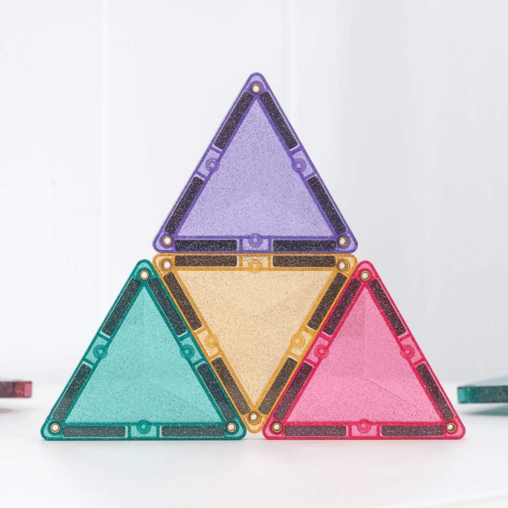 Naše úžasné třpytivé dlaždice v pastelových a zářivých duhových barvách, navržené pro bujnou fantazii a pohádkové objevitele, dodají každé stavbě nádech magie. Tato otevřená sada obsahuje čtverce a kombinaci rovnoramenných a rovnostranných trojúhelníků, které všechny překypují vícebarevnými třpytkami, a je ideální pro stavění třpytivých hradů, věží, mostů, zvířat a mnoha dalších věcí!