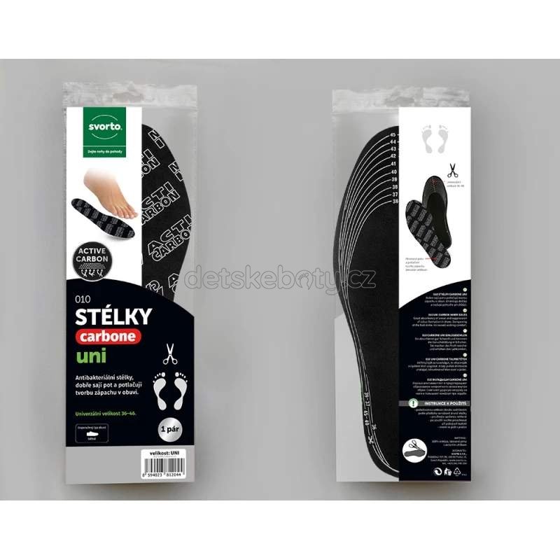 Svorto stélky Carbone Uni jsou vyrobeny z latexové pěny s aktivním uhlíkem, která zajišťuje vysokou savost a minimalizuje šíření bakterií. Měkká latexová vrstva tlumí nárazy a zvyšuje komfort chůze.