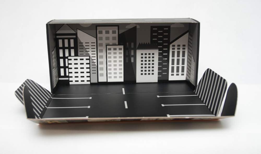 Funkční krabice s vnitřním potiskem města a parkoviště (slouží i jako úložný box)